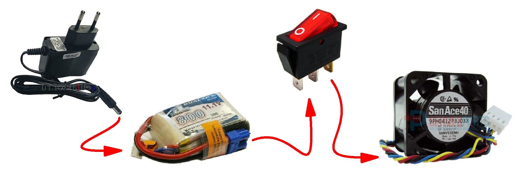 Подключение кулера к аккумулятору
