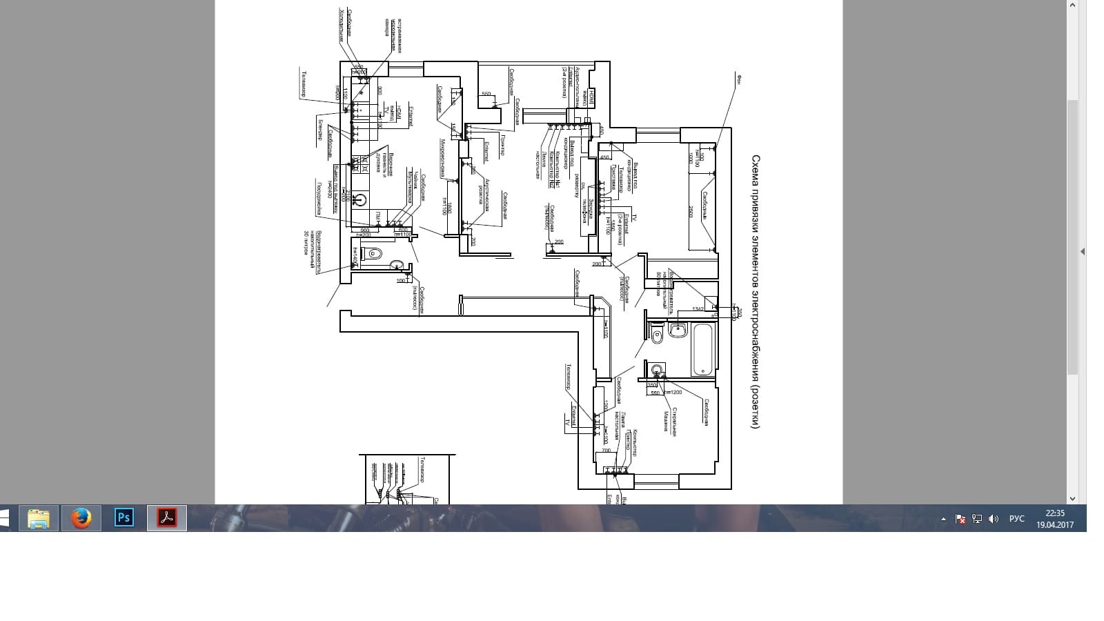 - план поверните горизонтально. Уберите размеры, напишите названия помещений. При возможности - нарисуйте нормальные картинки розеток и выключателей, как у меня (вложение).Похожая схема должна появиться и у Вас.