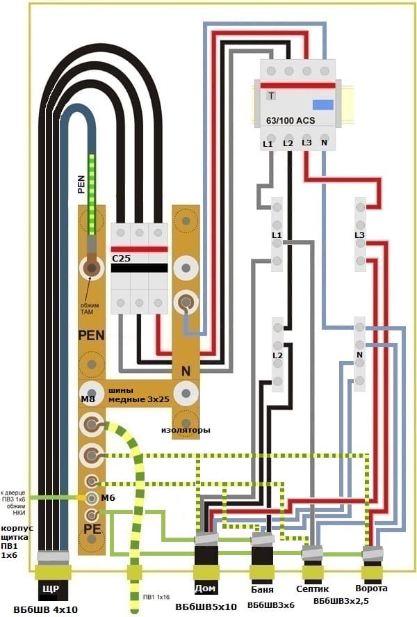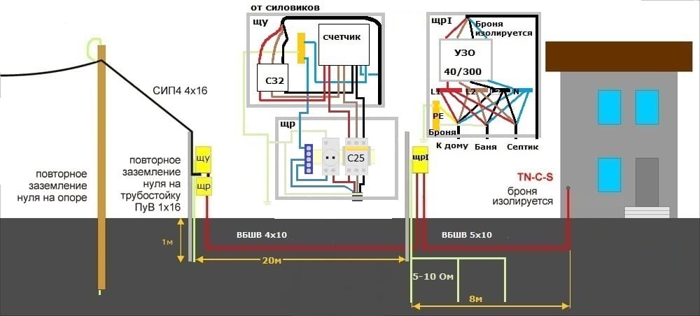 Если собираетесь делать TN-C-S, то и на остальные, отходящие линии тяните пятижильные кабеля (а не только на дом).а я хочу TNCS. Делить хочу в ЩР1. Набросал схему.Требуется критика.