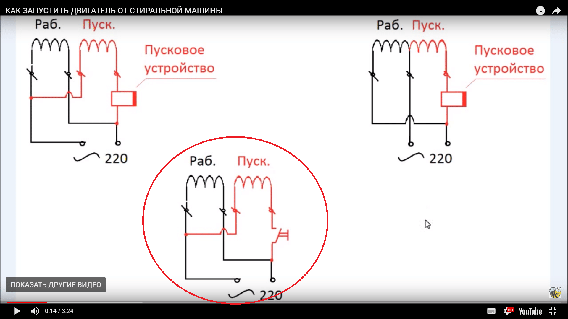 ПАВ писал(а):Источник цитаты С раскруткой ротора и уменьшением пускового тока рабочей обмотки пусковая отключается. Все, никаких больше хитростей.