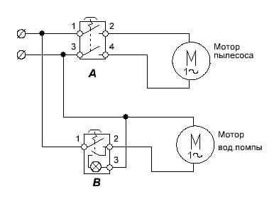 С "А" понятно и логично.Кнопка "А" одновремено замыкает клемы 1-2 и 3-4.