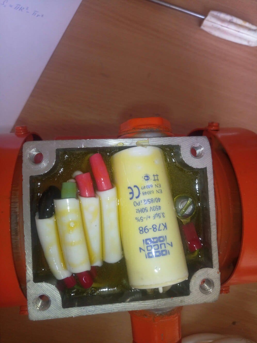 два вибратора (220В, мощность 0,12 кВт, ном ток 0,7 А, три провода идёт от него).