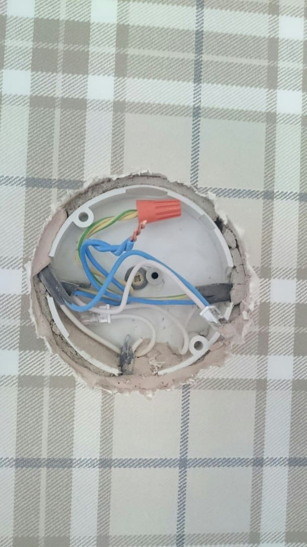 На кухне лампа в центре потолка - она подключена через двухклавишный выключатель (перенесен в коридор), работает нормально. Фаза, ноль для нее взяты из коробки для выключателя на кухне (который заглушен).