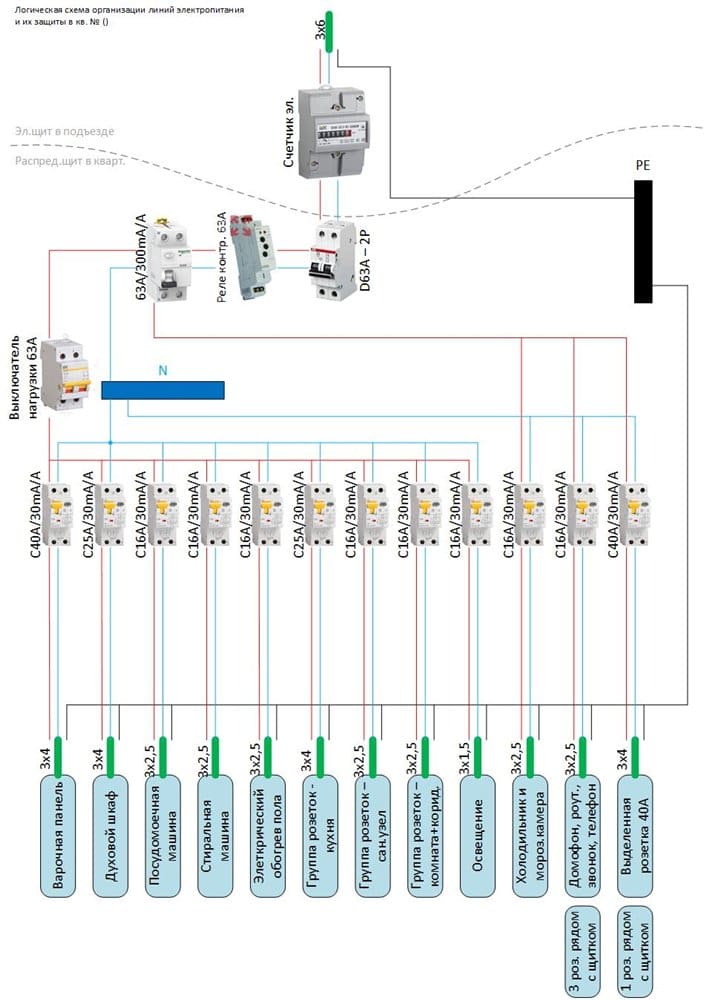 Никаких автоматов С, дифавтоматов, 100мА и АС в квартире. На лестничной площадке автомат D под сечение кабеля в квартиру.