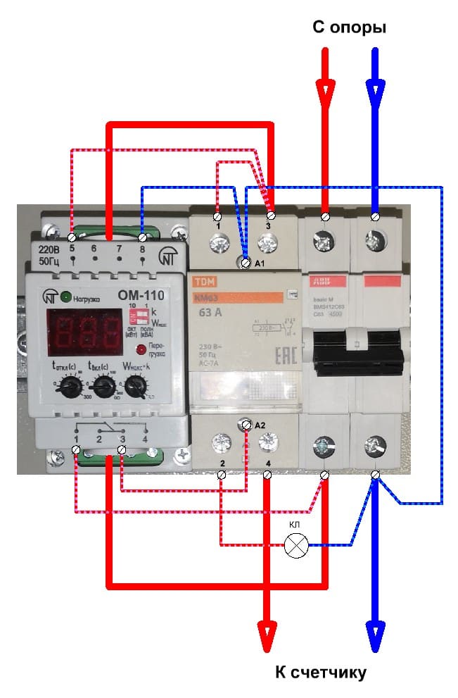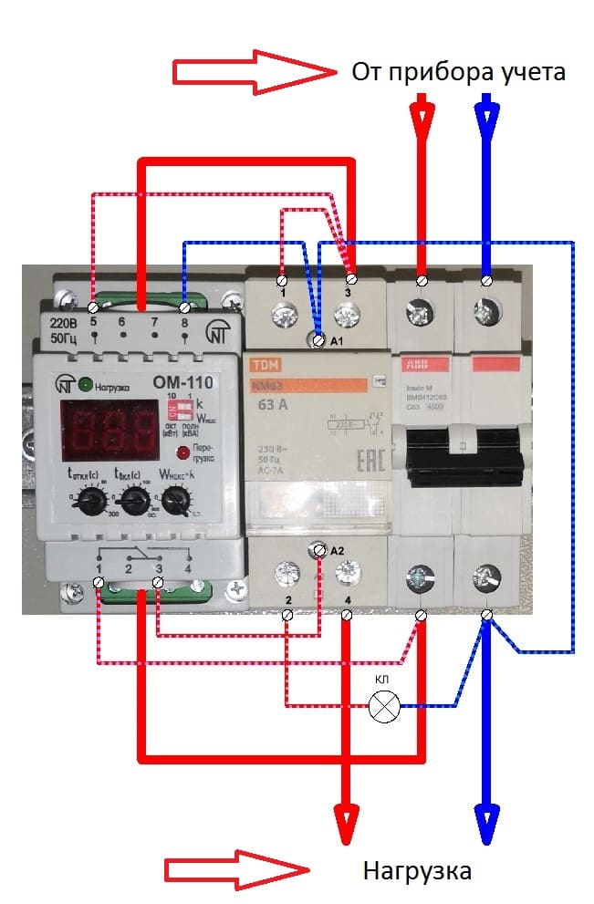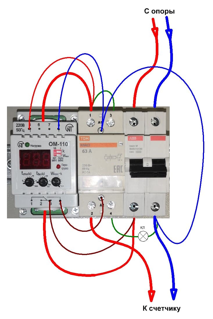 Вот еще описание и схема подключения ... https://samelectrik.ru/chto-takoe-ogran ... nosti.htmlIgaxa писал(а):Источник цитатыЕсли не трудно, можете схему нарисовать на моем примере?TOPMO3 писал(а):Почитайте сначала ... http://electrik.info/main/electrodom/11 ... nenie.html ... будут вопросы - бум разбираться.Igaxa писал(а):Добрый день. Подскажите пожалуйста как правильно подключить ОМ110 через контактор КМ63.