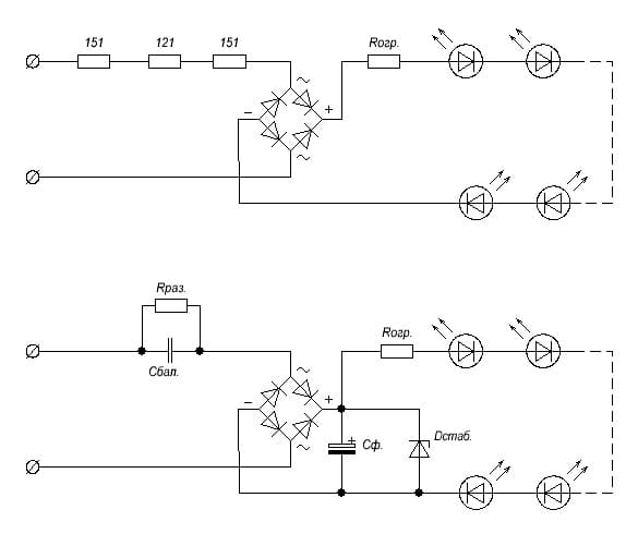 Предположу ... диод, в прямом включении и резистор нагрузки (в совокупности) - это и есть линейка светодиодов.ПАВ писал(а):Источник цитаты И где второй диод в прямом включении? А насчет стабилизации при таком включении- сумлеваюсь.