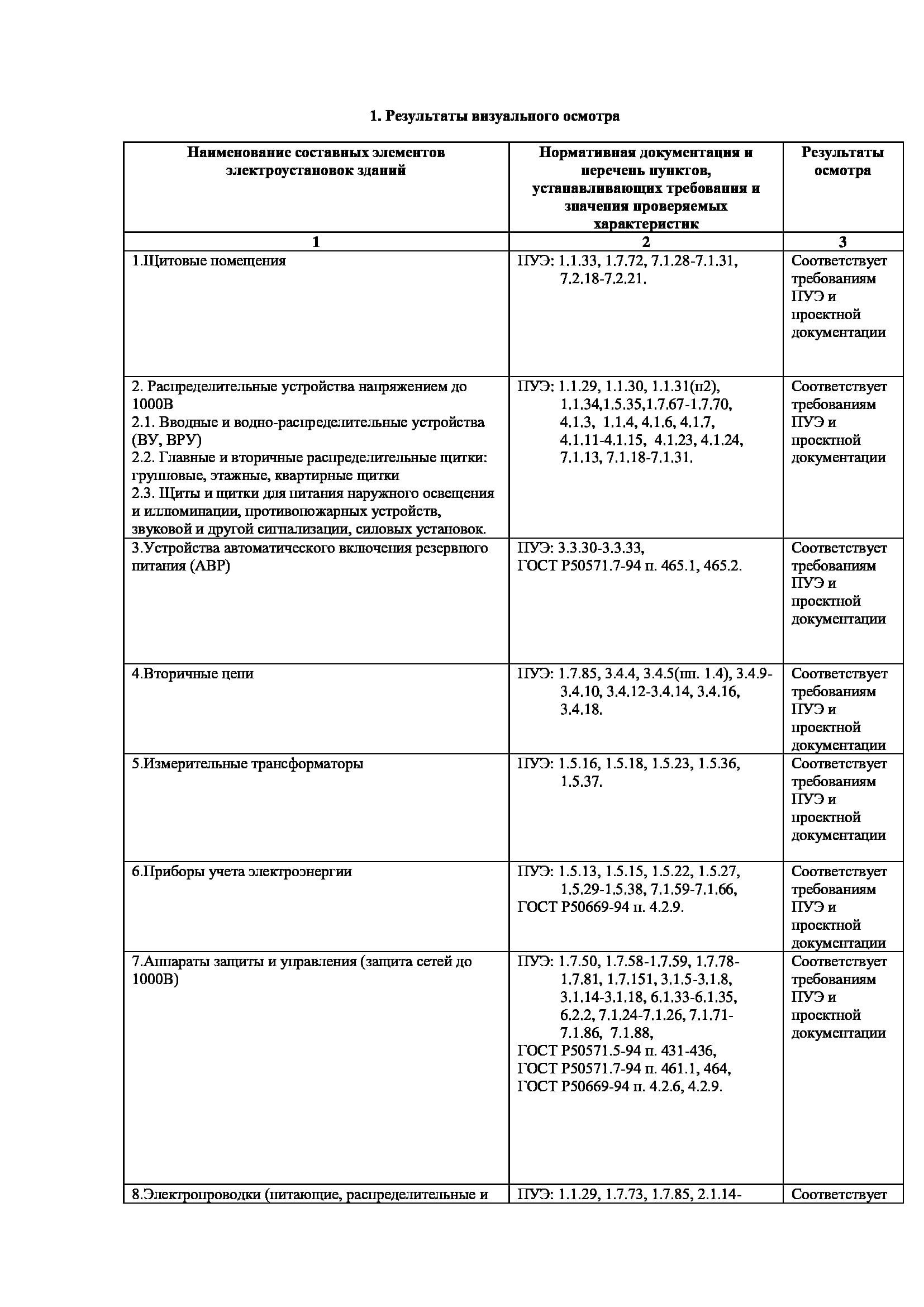 А что Вам мешает проверить соответствие с самими ПУЭ и ГОСТ_ами? Зачем Вы сравниваете неизвестно кем написанное ... может они всё по-пьяне или в шутку выложили фигню!Anastasiya писал(а):Источник цитаты Здравствуйте. Черт дернул меня сравнить свой протокол визуального осмотра с другими имеющимися на различных сайтах. И я поняла, что везде указаны разные разделы ПУЭ. Есть и общие разделы и различные. Я не могу понять, где правда. Прикладываю протокол, имеющийся у меня. Может поскидываете свои протоколы визуального осмотра, в которых вы уверены. Можно с программой инструментального контроля. (я его еще не сравнивала, но думаю хватает и там ошибок)