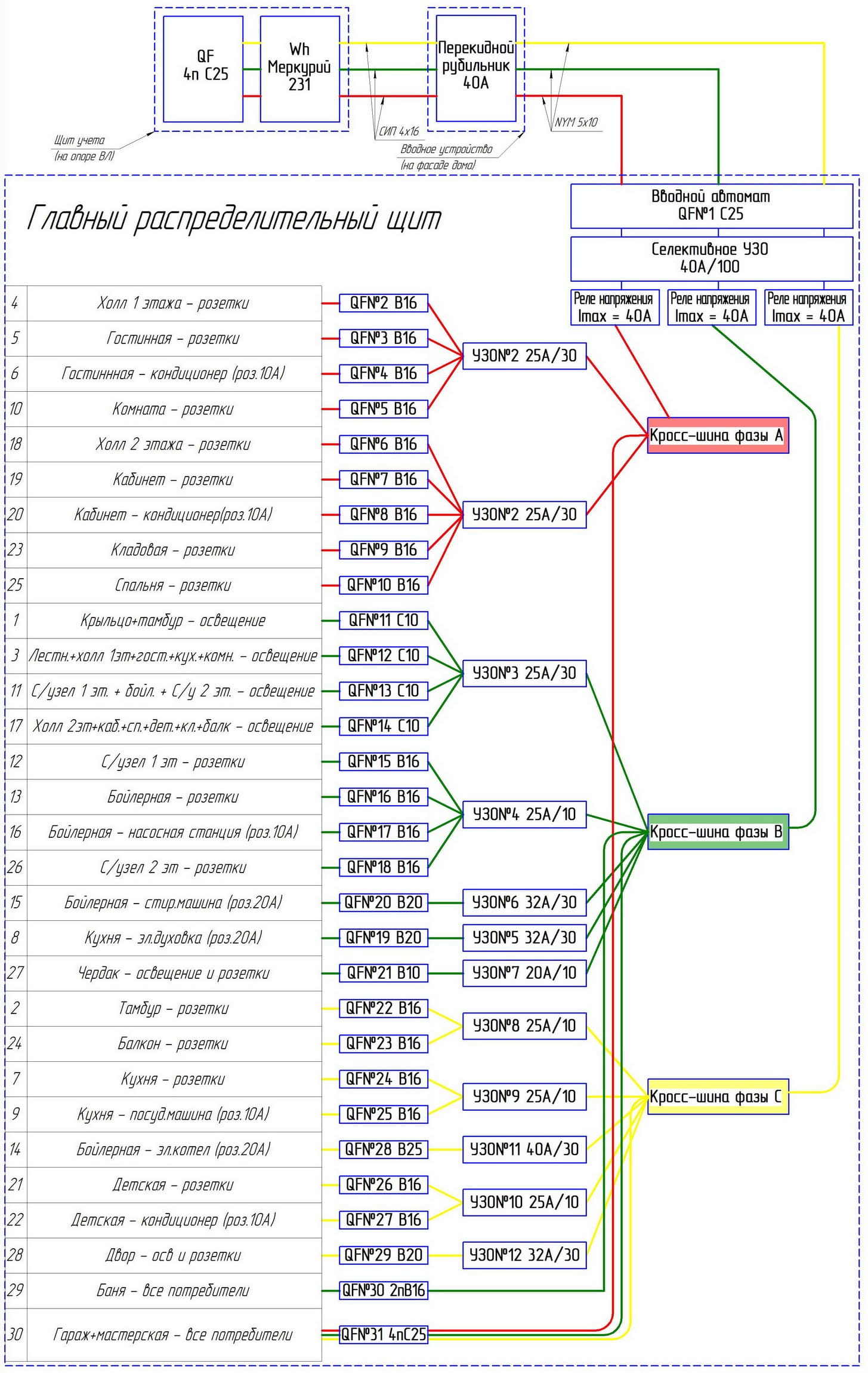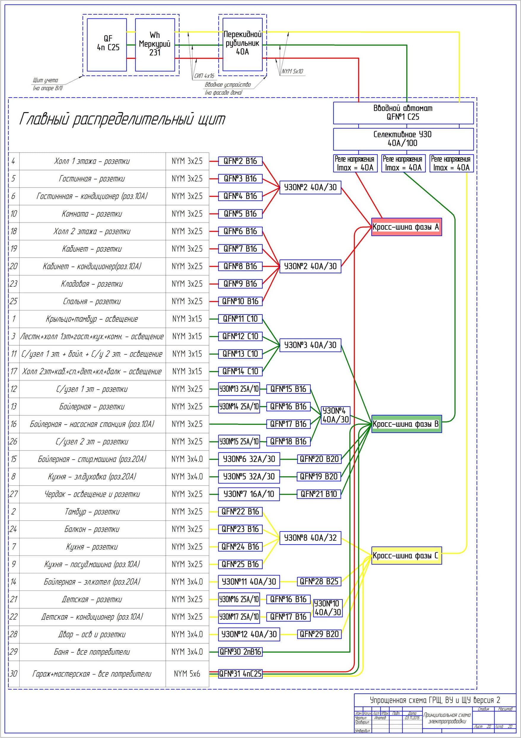 Схема энергоснабжения дома 3 фазы 15кВт