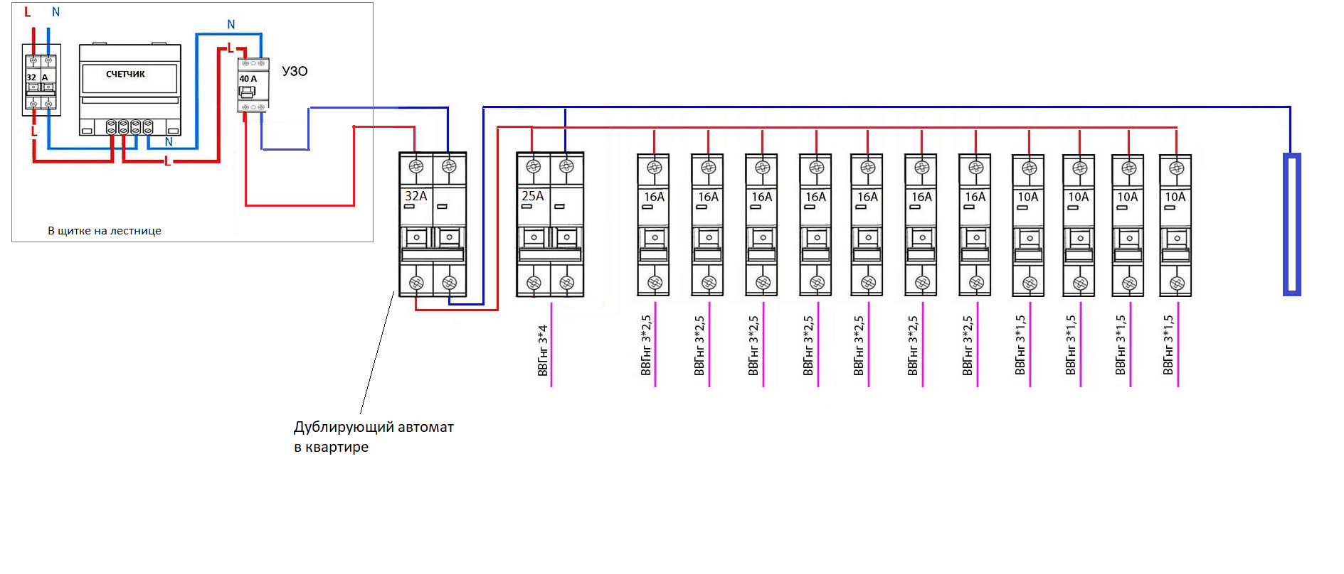В квартире уже стоит щиток как на схеме