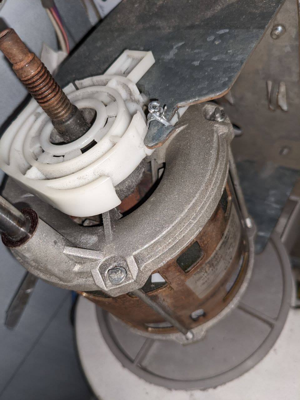 Мне кажется, данный мотор используется в реверсивном режиме (крутится туда и сюда). Если так, то проблема, только в конденсаторе.