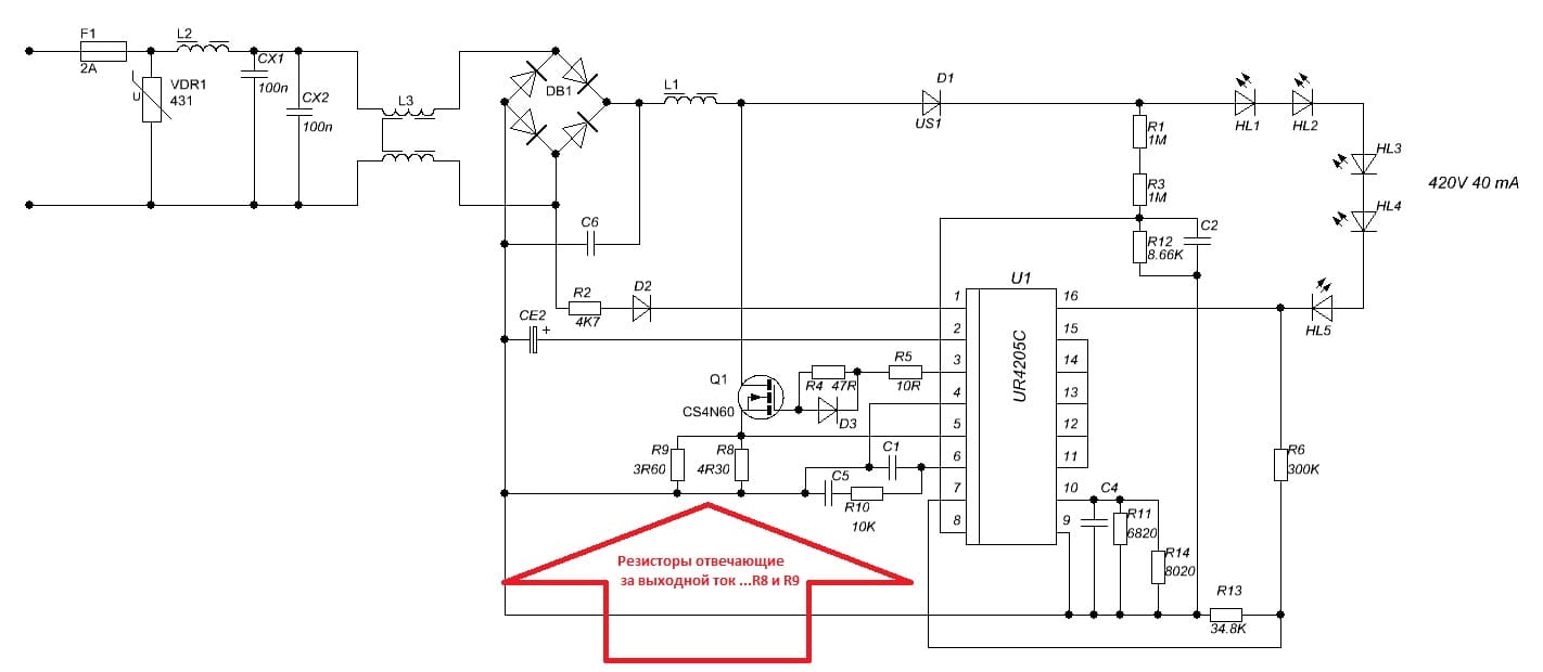 С даташитами не знаком, не умею пользоваться. Прошу подсказать где расположены на плате резисторы выдающие ток на диоды.