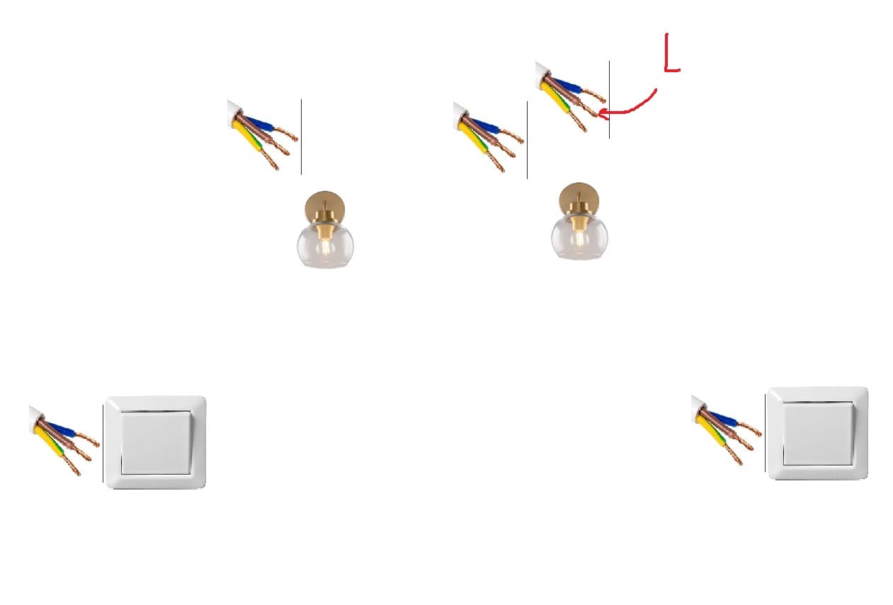 Где выключатели, соответственно кабель трехжильный на каждый выключатель. Где источники освещения на одном - кабель трехжильный, на втором - два трехжильных кабеля. При подачи тока - фаза в том кабеле - где источник освещения с 2мя кабелями из стены.