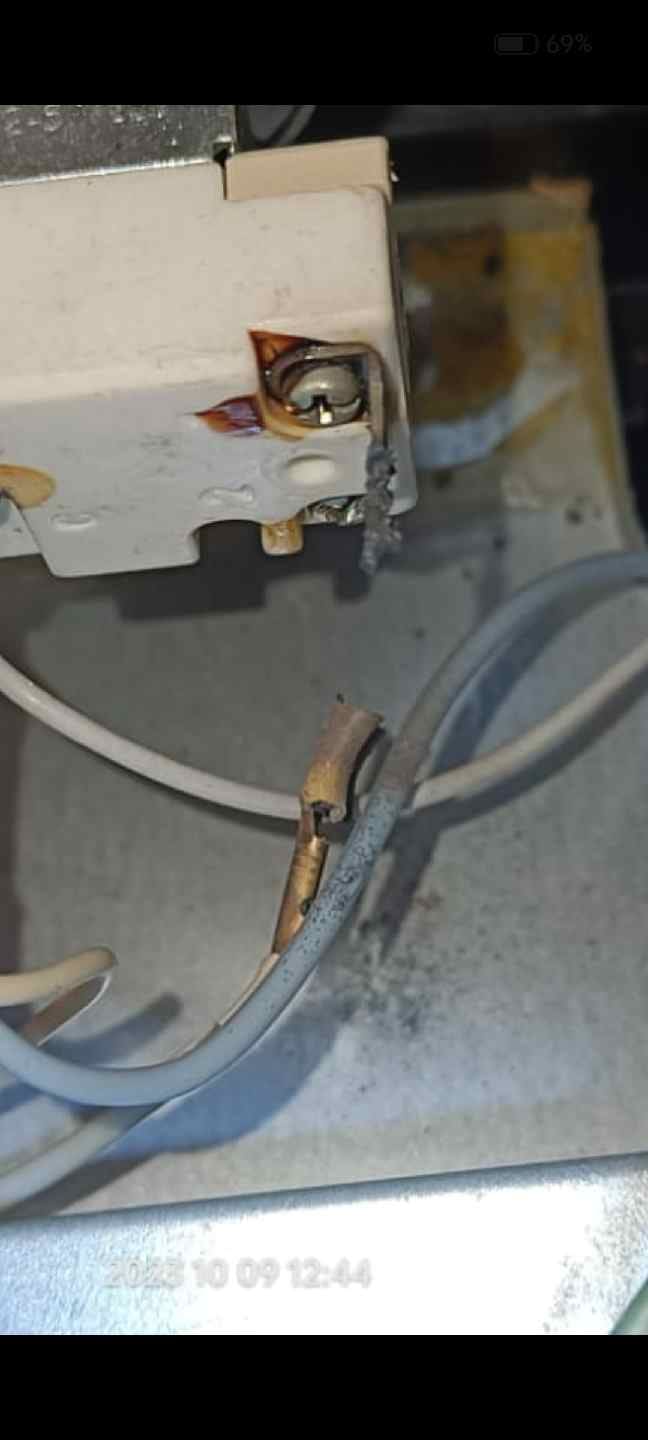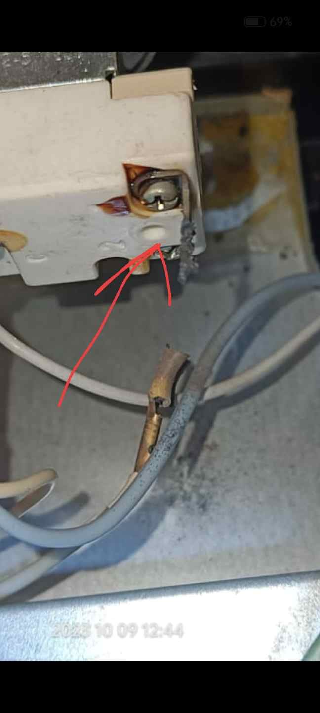 Добрый день. Проблема такая - термостат духовки постоянно держит максимальную температуру и не отключается. Это произошло после моего вмешательства. Я откручивал винты на клеммах и видимо как-то сдвинул замыкатель. Теперь не могу понять как правильно ввставить замыкатель. Помогите пожалуйста разобраться. Новый термостат стоит дорого. Фото прилагаю.