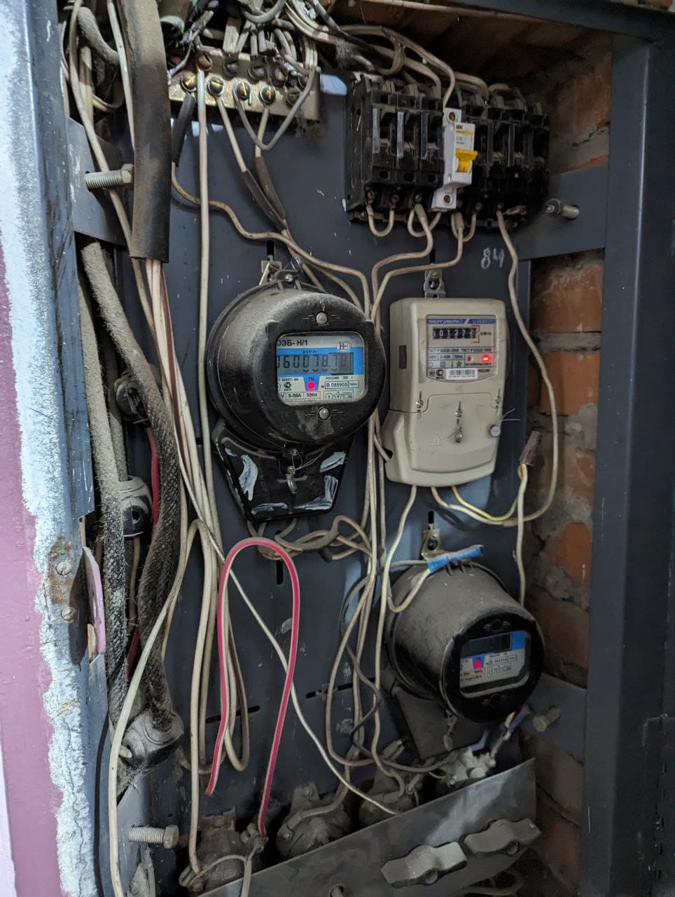 От счетчика фазный провод идёт на два однополюсных автомата, один на 16А, другой старый без маркировок, вот старого питание идёт на розетку плиты