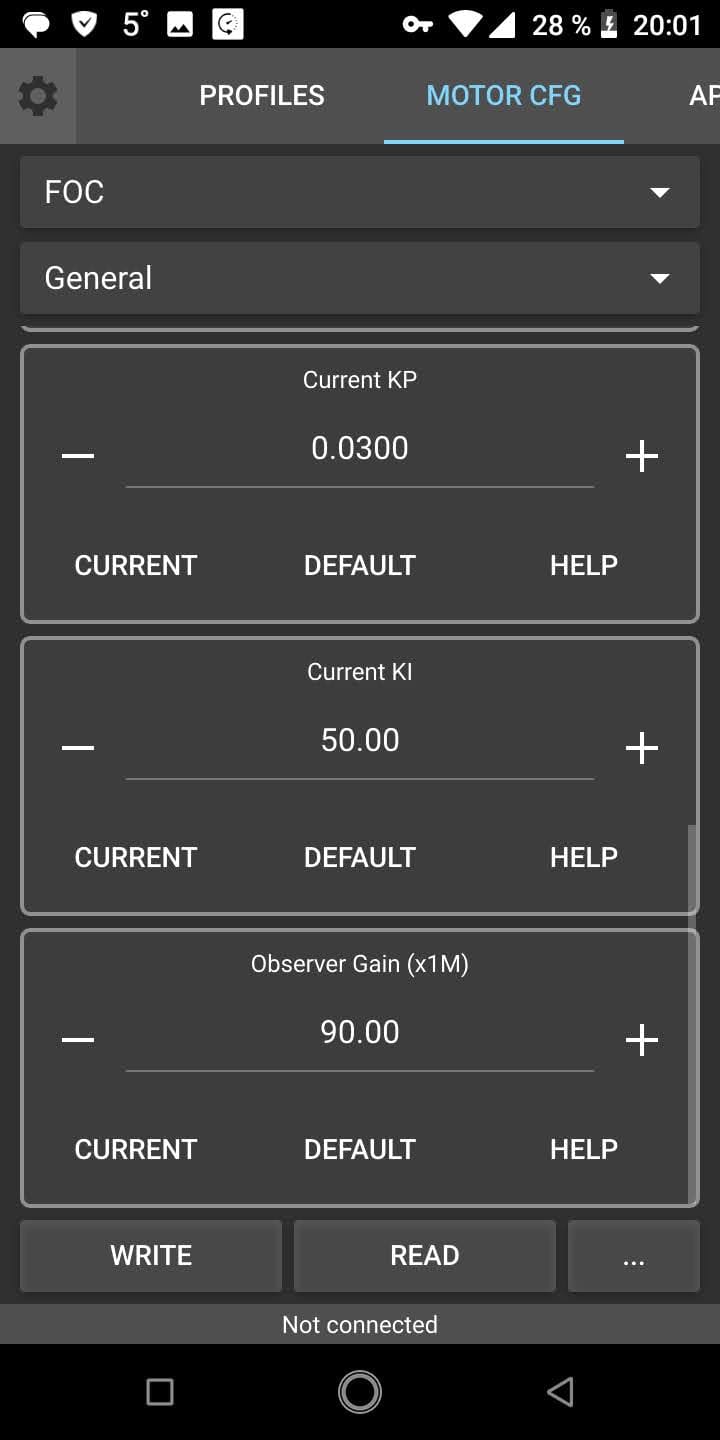 Выставляю фазный ток мотора 100 А - минимально комфортный для меня, мотор спокойно берет без нагрева.