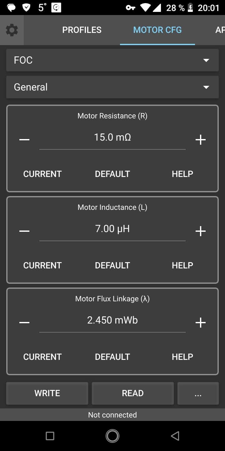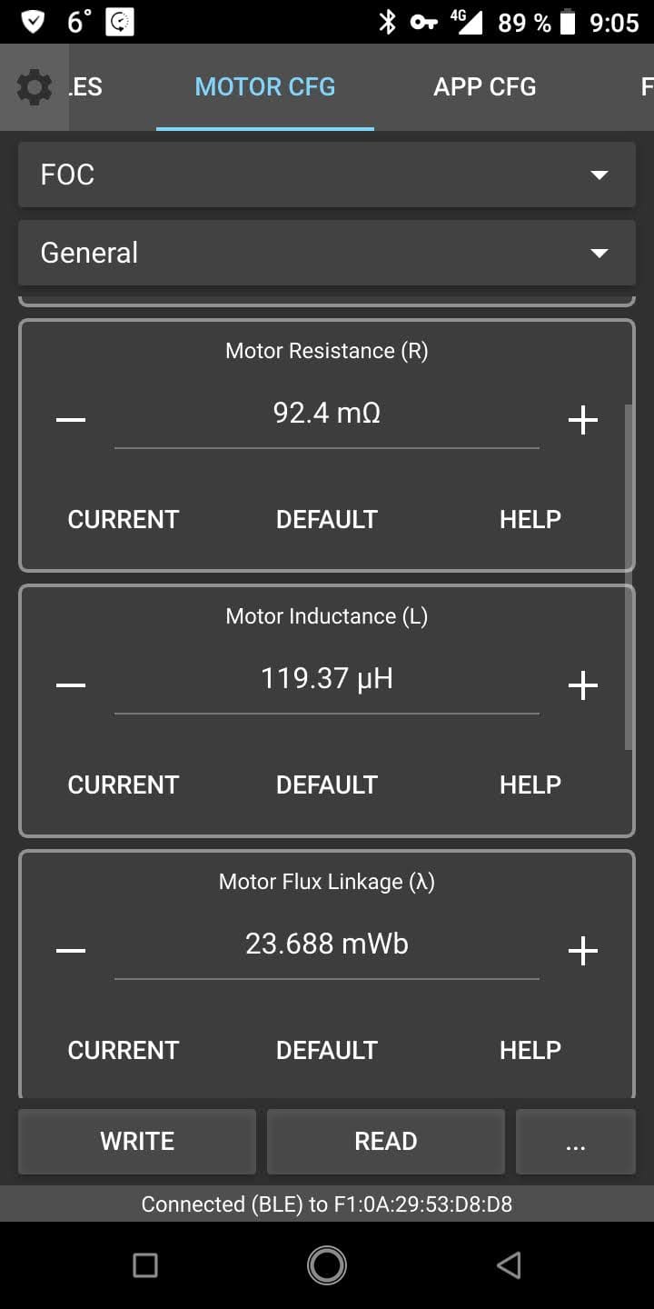 Подключен программируемый контроллер VESC. Он делает тест мотора и выставляет его параметры (Фото 1-2).