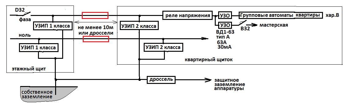 1.Для полной защиты нужно будет кое-что переделать в этажном щите и щитке квартиры.