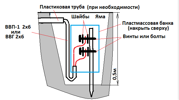2.То же и мастерской, с расстановкой оборудования. Там нужно будет забить заземление - достаточно и штыря диаметром побольше (12-16мм) и длиной 1-2м (нижний конец заточить). Место заземления желательно подальше от тех мест, где ходят люди. Конструкция - Вложение. Места соединения медных жил с заземлителем смазать и обмотать долгоживущей пленкой.