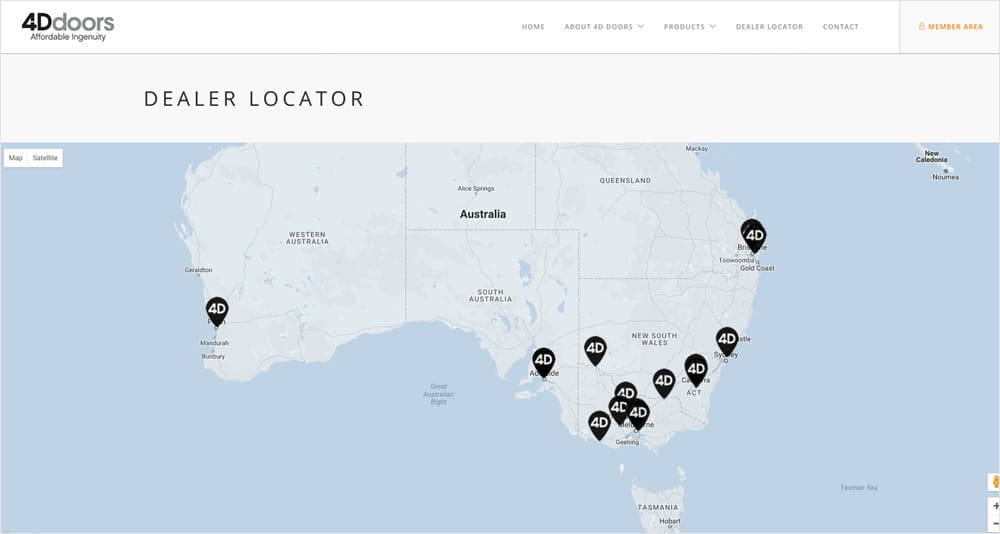 A dealer locator is built into the site allowing potential customers to find the 4D Doors retailer closest to them.