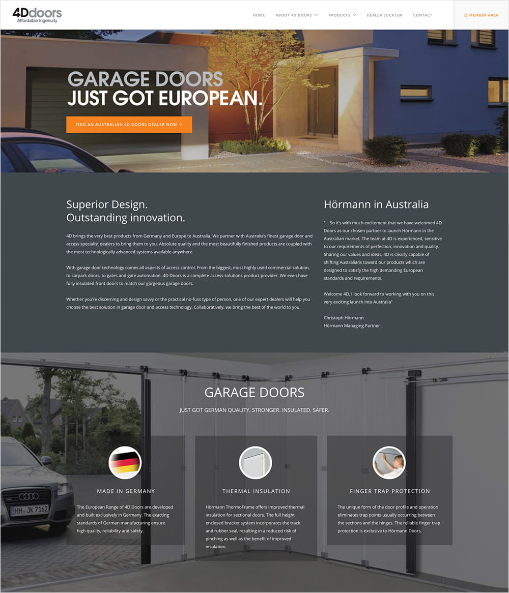 4D brings the very best products from Germany and Europe to Australia. They partner with Australia’s finest garage door and access specialist dealers to bring them to you. Absolute quality and the most beautifully finished products are coupled with the most technologically advanced systems available anywhere.