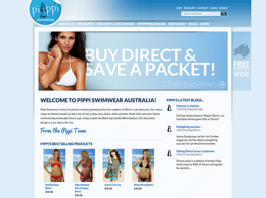 Pippi Swimwear is one of Australia’s fastest growing online line suppliers of Bikini’s and swimsuits. Made from premium fabrics and featuring removable breast cups, lining to both the Bikini top and the Bikini bottom, this Australian Company offers price competitive products of excellent quality.