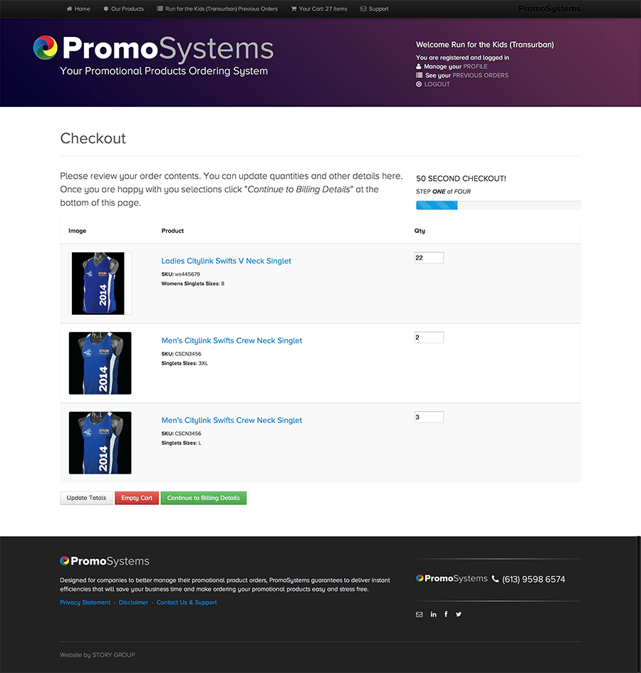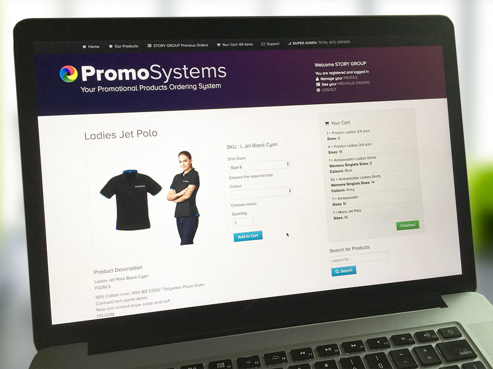 An intuitive interface allows the user to log-in and see their previous orders, manage their details and order (or reorder) large quantities of complex products easily and simply. Story built Promo Systems to be fully responsive – working across Smart Phone, Tablet and Desktop systems so that the interface adapts to the viewing platform automatically.