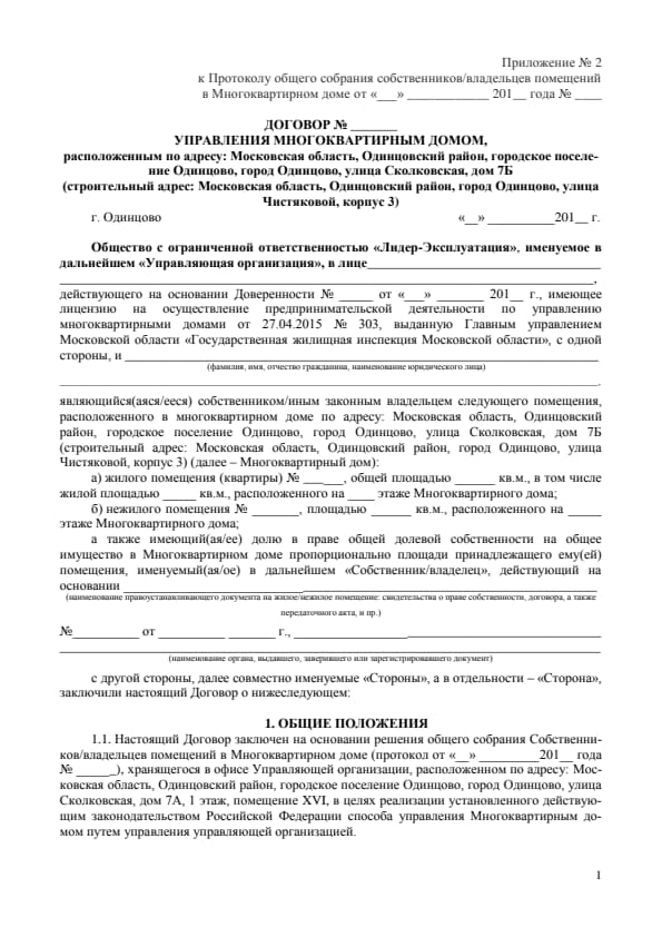 Образец договора управления МКД с собственником/владельцем