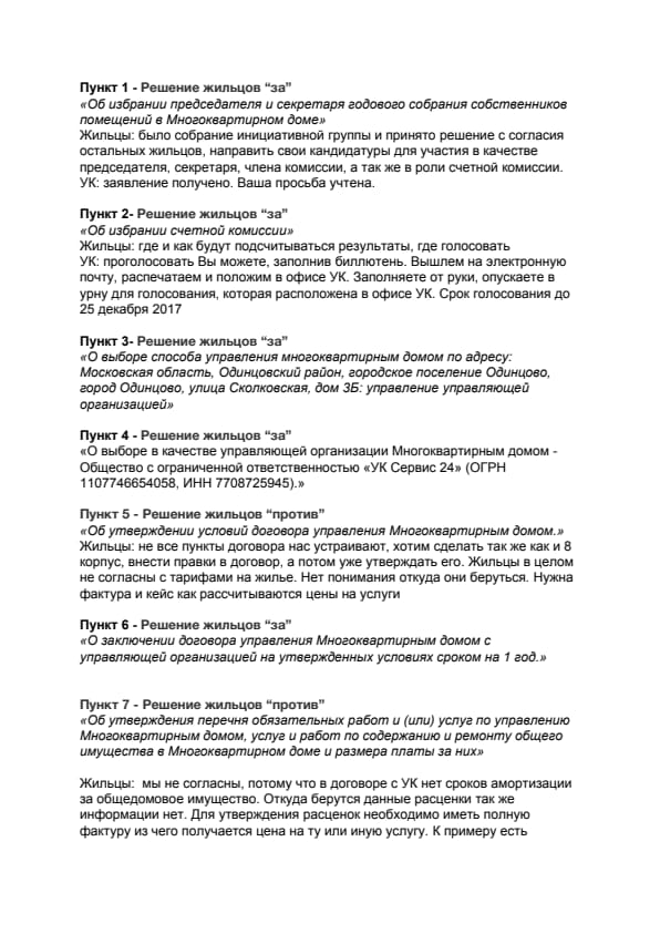 Инициативная группа подготовила примечания к бюллетени голосования по каждому из пунктов.