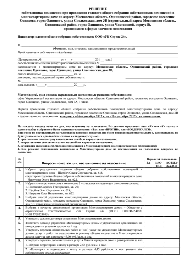 1. Ни один из вопросов,заданных собственниками не вошел в бланк