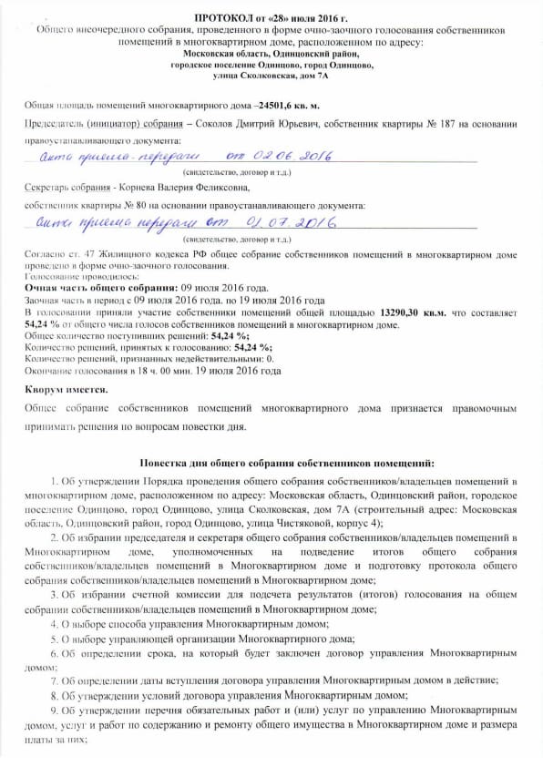 Re: Общее Собрание Собственников, Сколковская, 7А