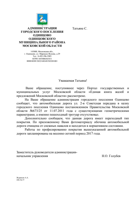 tanya_joiner писал(а):Ответ Добродела по вопросу ремонта 2-ой Советской. от 24.01.2017