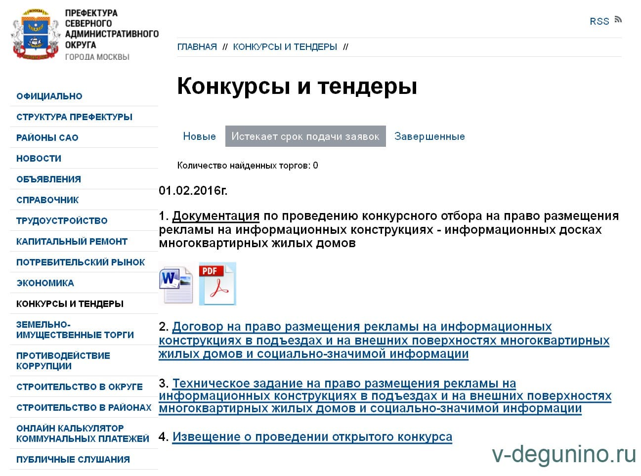 Объявленный Префектурой САО конкурс февраль 2016 года