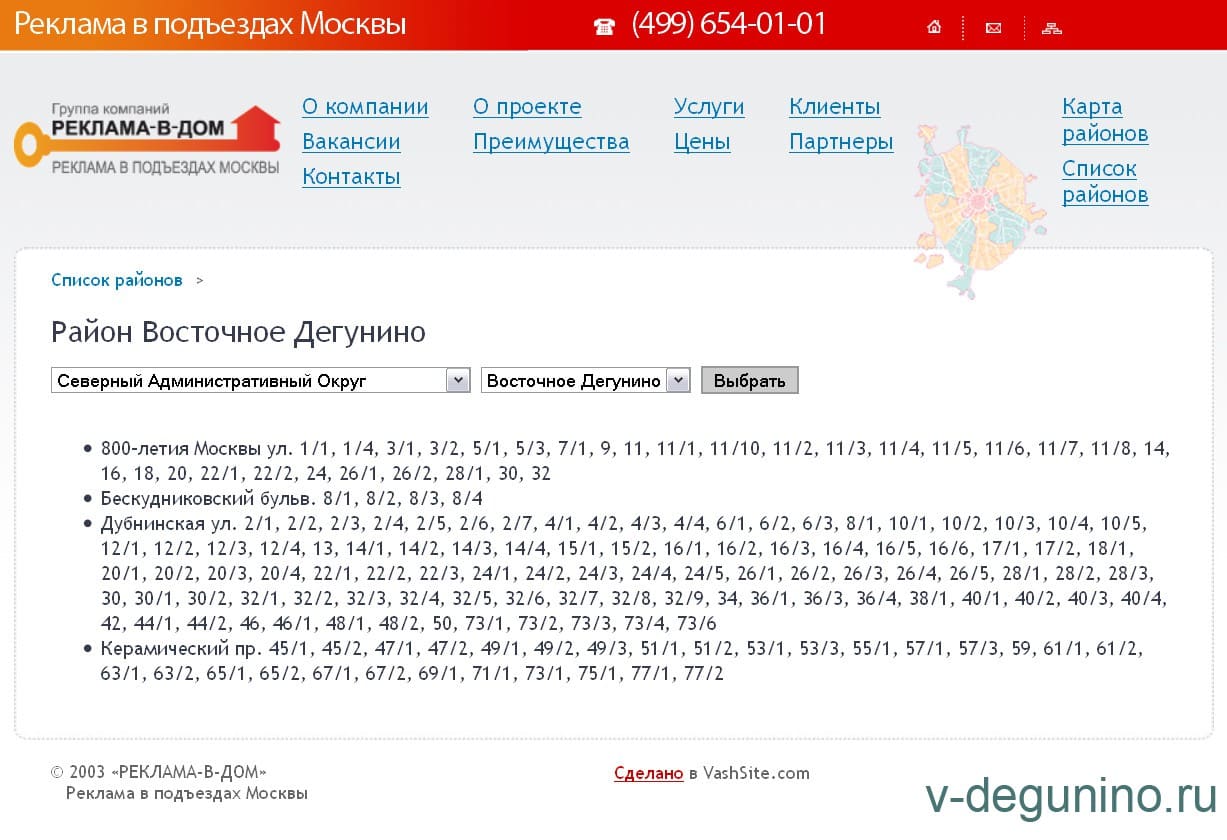 А вот уже осенью 2015 года ООО "РЕКЛАМА-В-ДОМ" продаёт рекламные места в районе Восточное Дегунино