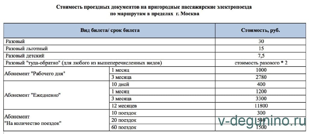 Стоимость проездных документов по маршрутам внутри г.Москва