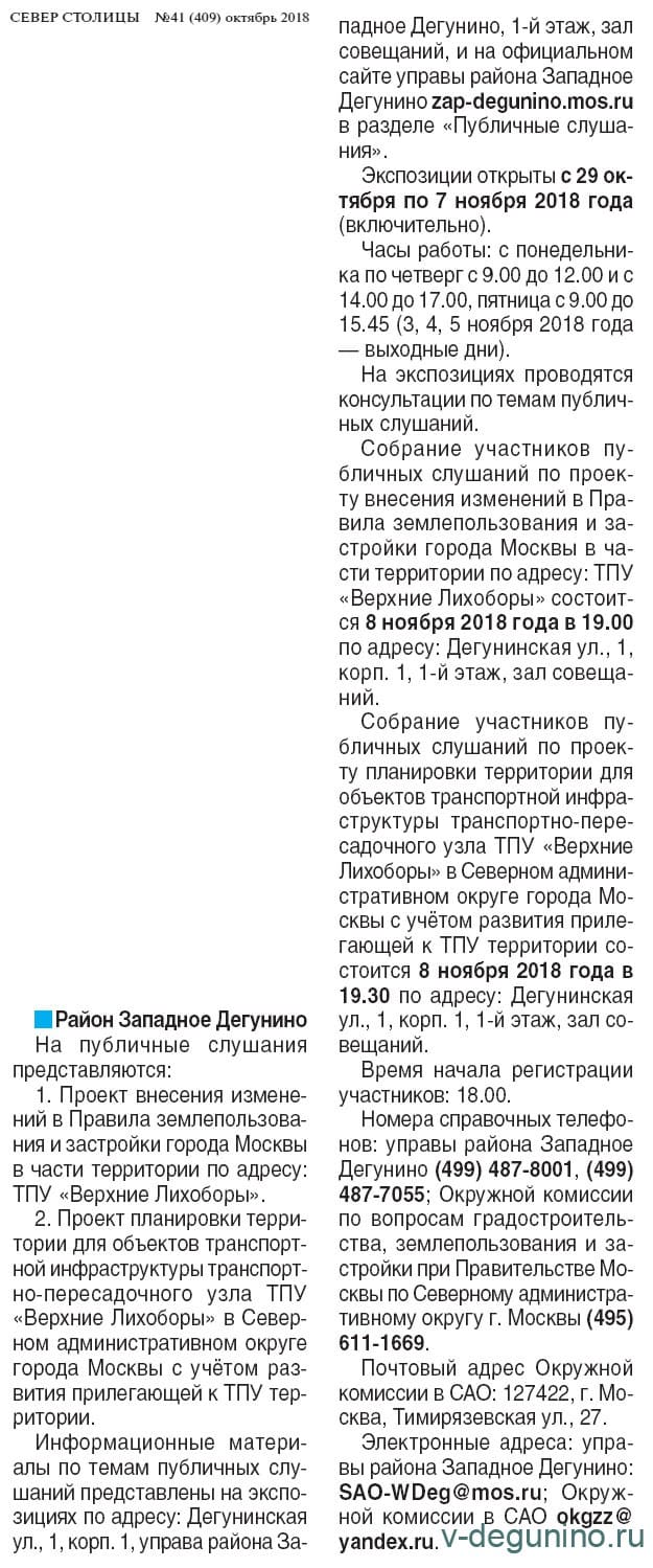 08.11.2018 г. Собрание публичных слушаний р-н Западное Дегунино: ТПУ "Верхние Лихоборы"