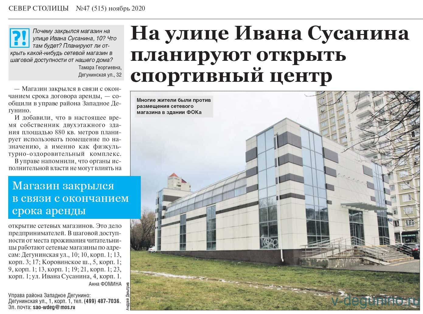 Почему-то окружная газета "Север столицы" стыдливо умалчивает кто-же заключил договор аренды здания физкультурно-оздоровительного комплекса с магазином "Магнит" :)