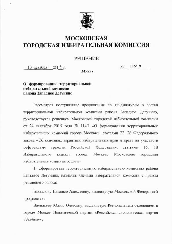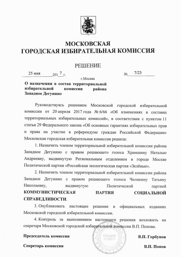 комиссии района Западное Дегунино с правом решающего голоса Васильеву
