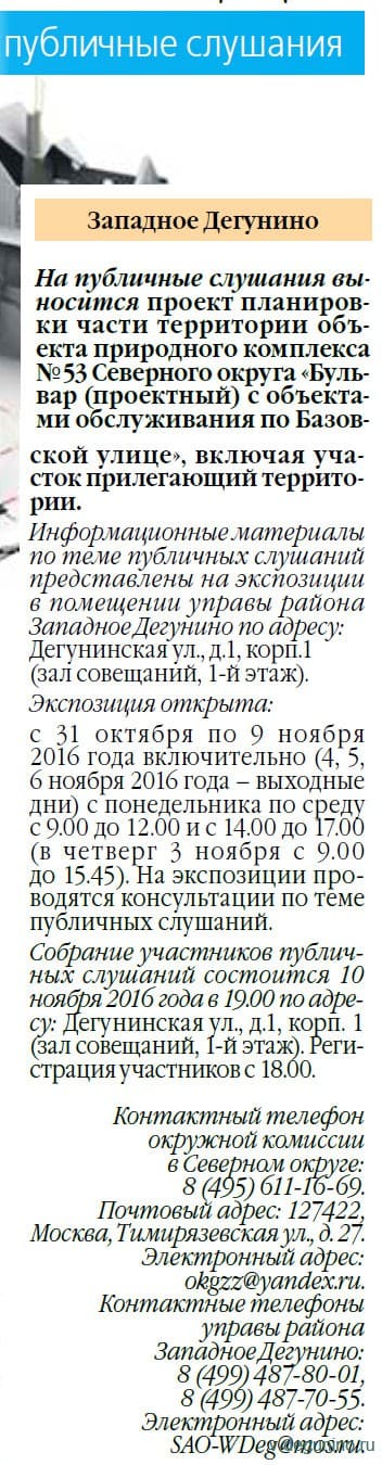 10 ноября 2016 г. Публичные слушания в районе Западное Дегунино.