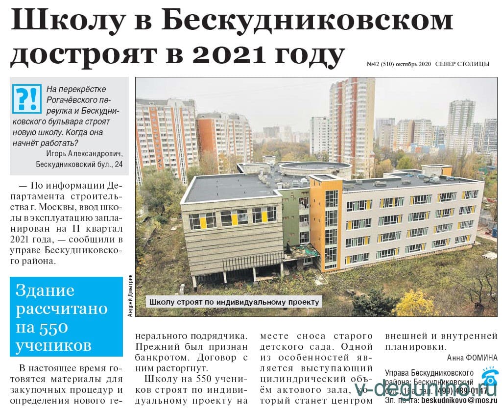 Строительство Школы на 550 мест (на месте сноса здания ДОУ № 519) - корп. 16 в мкр. 6 Бескудниковского района
