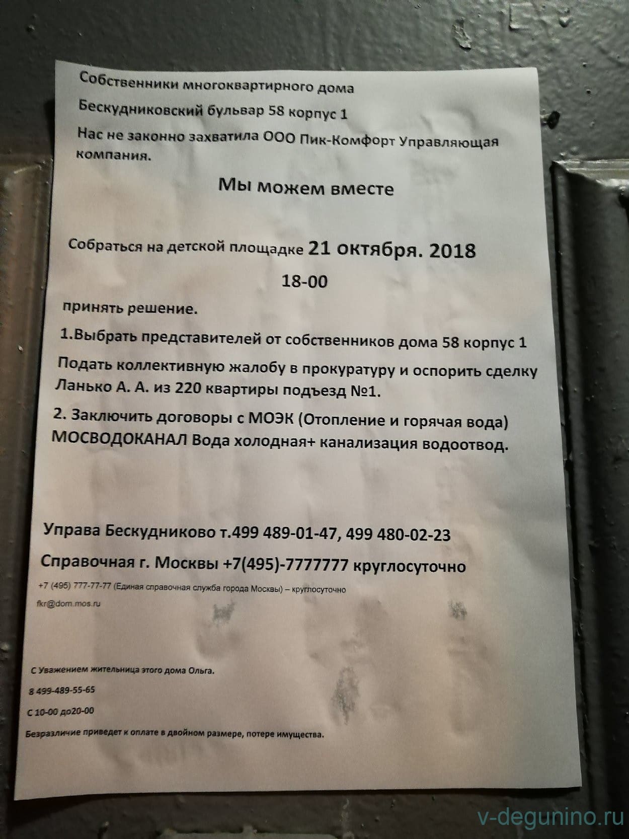 В Бескудниковском районе происходит нарушение Жилищного кодекса в части выбора Управляющей организации