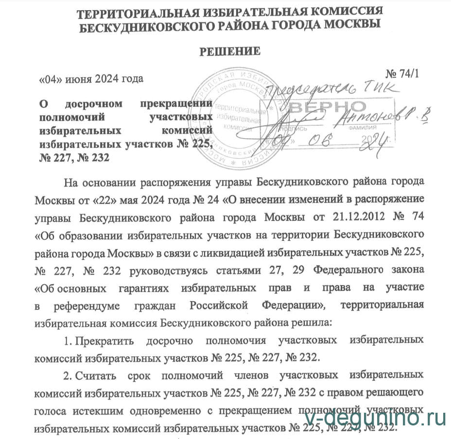 Ефанов Сергей писал(а):Решение Московской городской избирательной комиссии № 10/6 от 22 июня 2017 года "О назначении в состав территориальной избирательной комиссии Бескудниковского района"