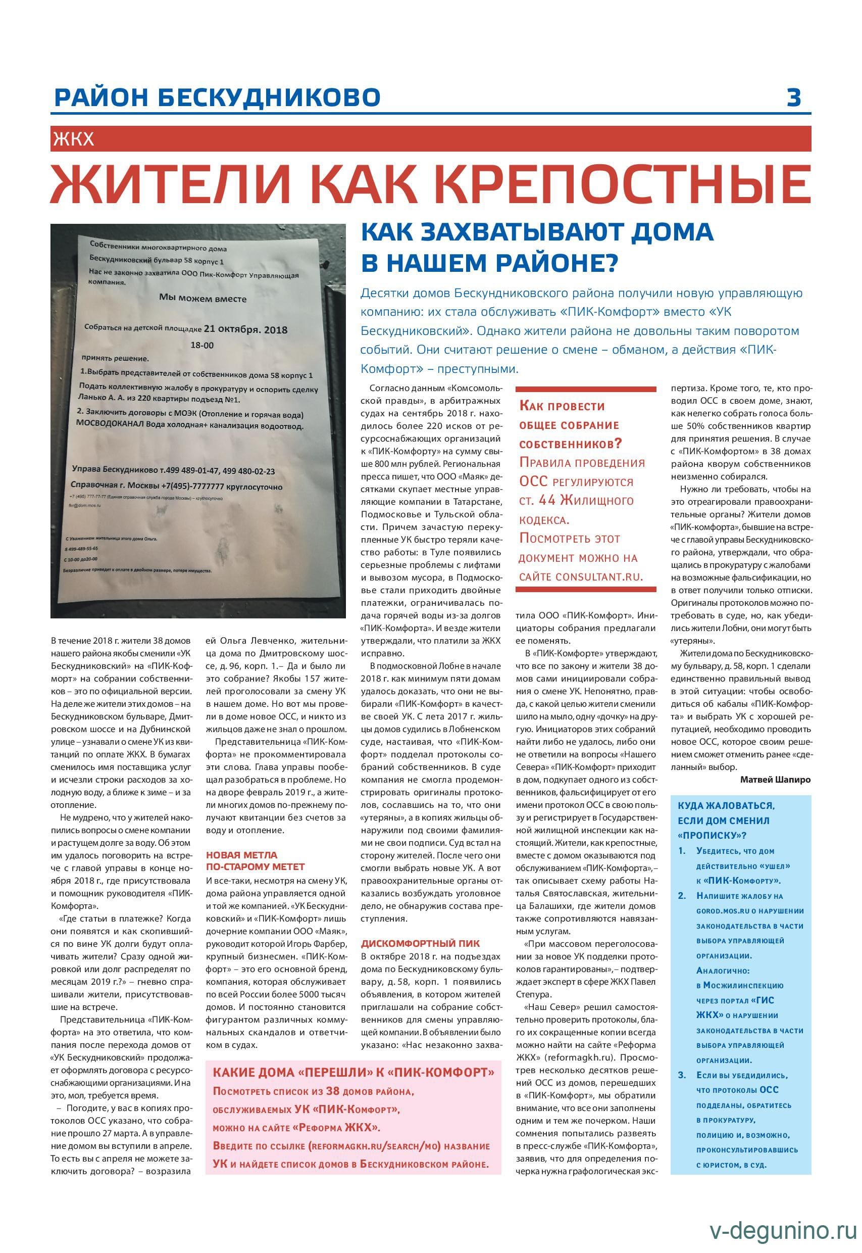В Бескудниковском районе происходит нарушение Жилищного кодекса в части выбора Управляющей организации