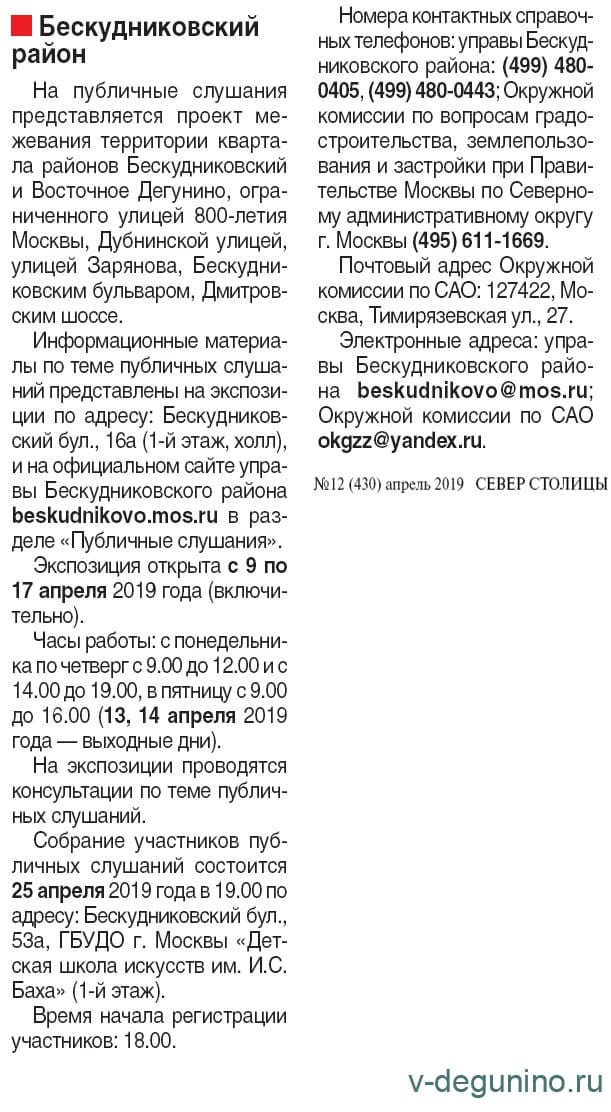 д. 16А (холл, 1 этаж) и на официальном сайте управы Бескудниковского района: https://beskudnikovo.mos.ru в разделе «Публичные слушания».