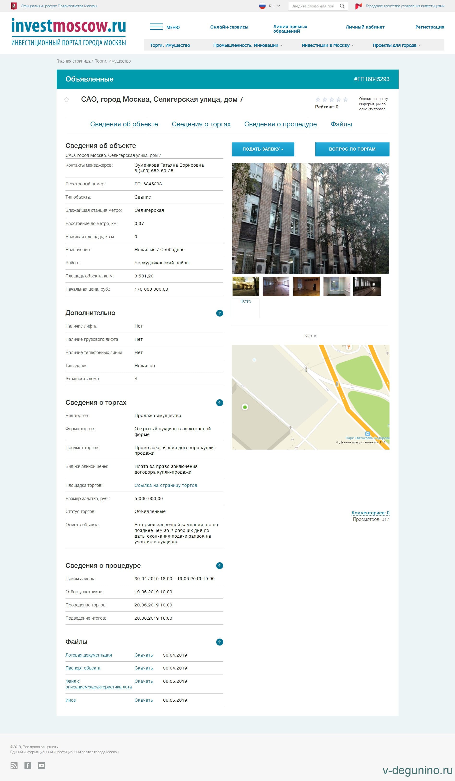 Здание АТС на Селигерской выставлено на торги 20.06.2019 г.