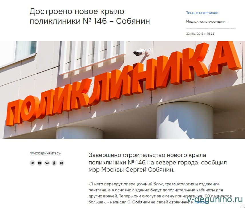 В апреле 2022 года закрывается на капитальный ремонт поликлиника Бескудниковский б-р д. 59