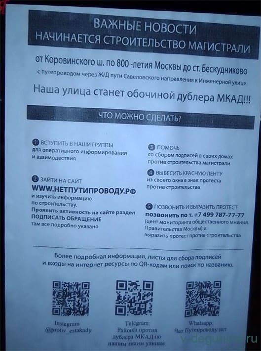 В районе Восточное Дегунино появились листовки Против строительства Путепровода у платформы Бескудниково.