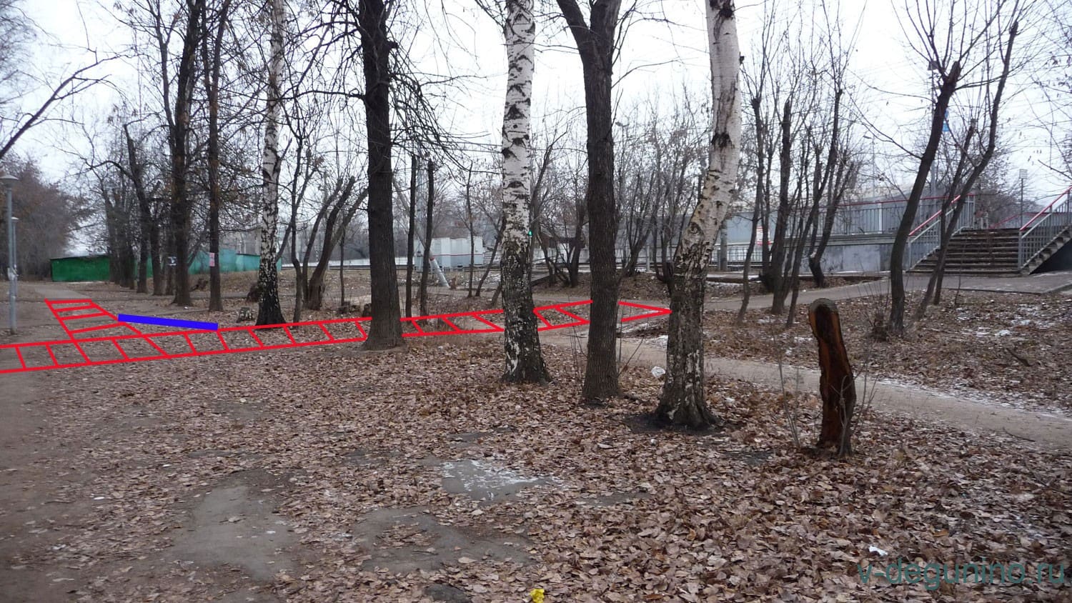 А всего нужно: Проложить пару тропинок из-за изменения входа на железнодорожную станцию.