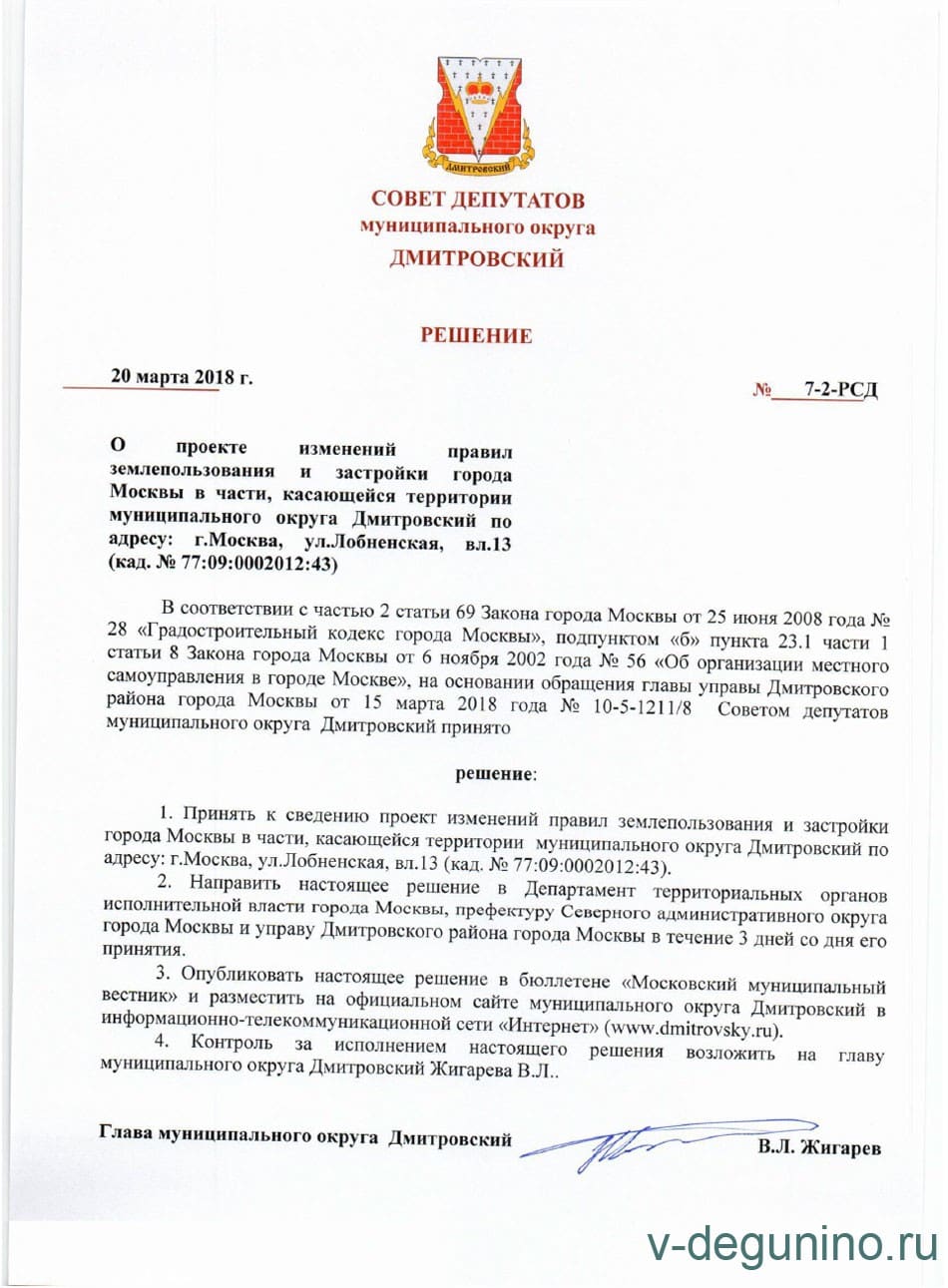 Проект изменений ПЗЗ (ул. Лобненская вл. 13)