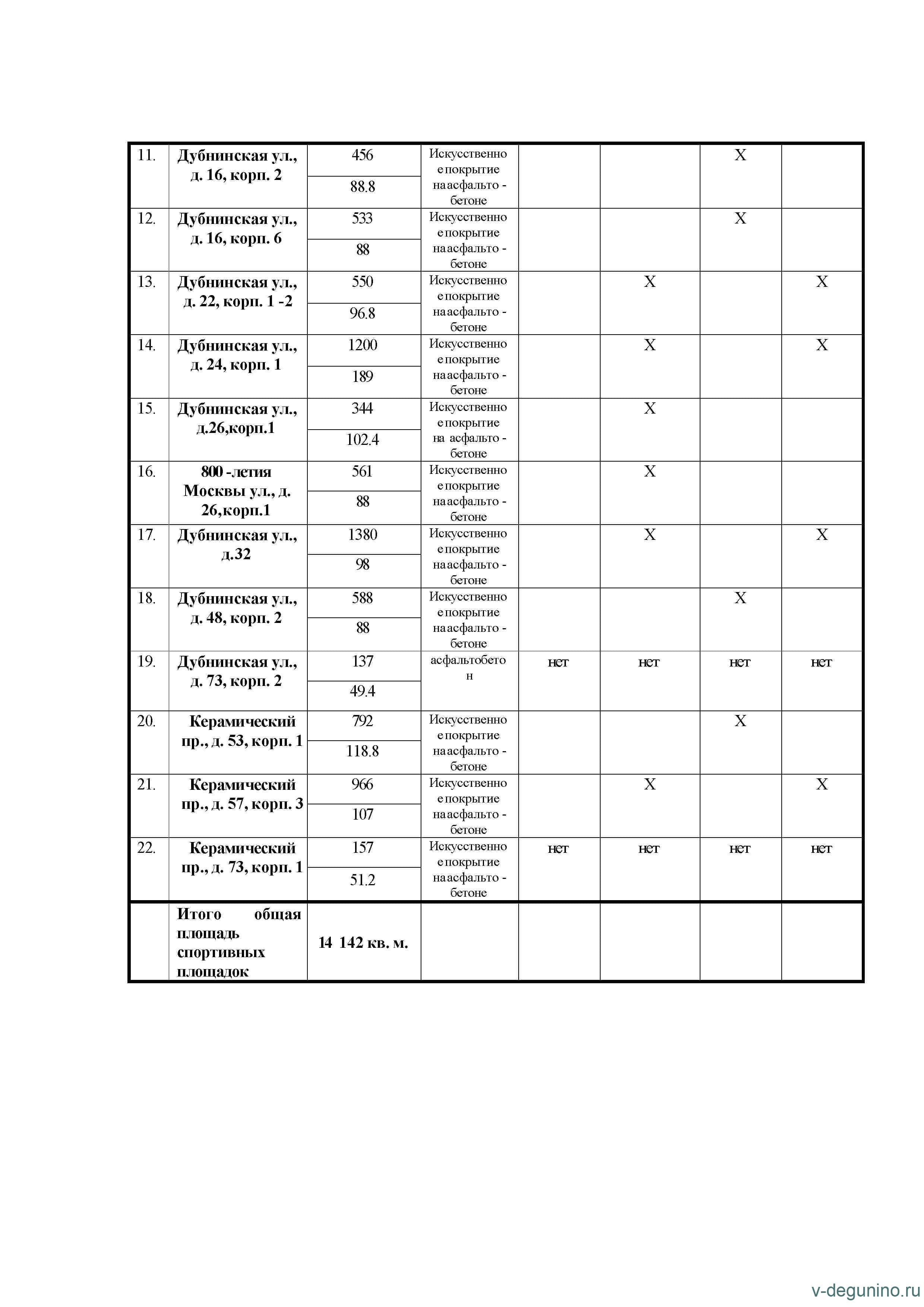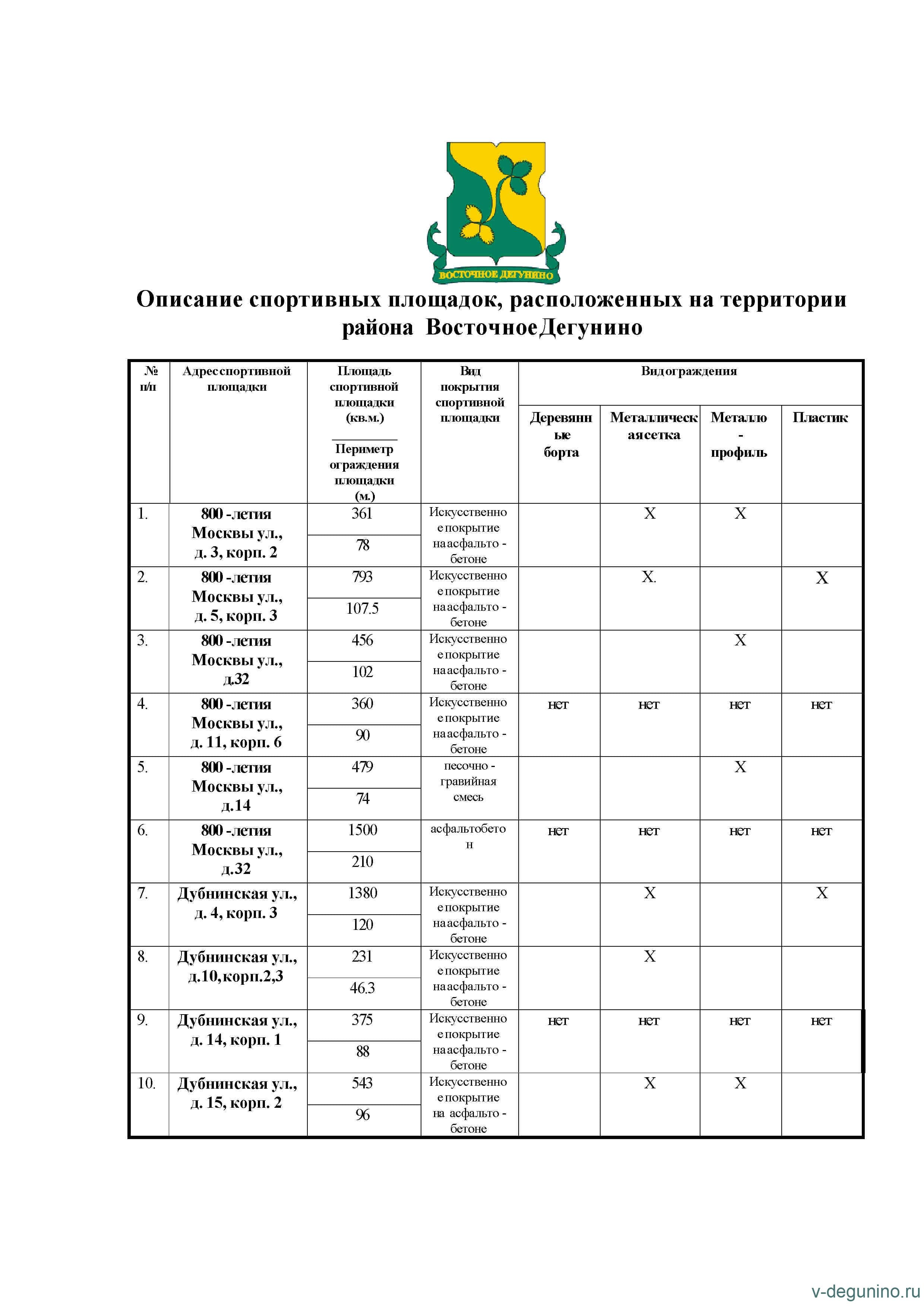 Спортивные площадки района Восточное Дегунино САО города Москвы