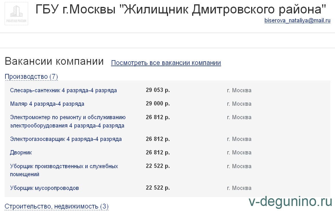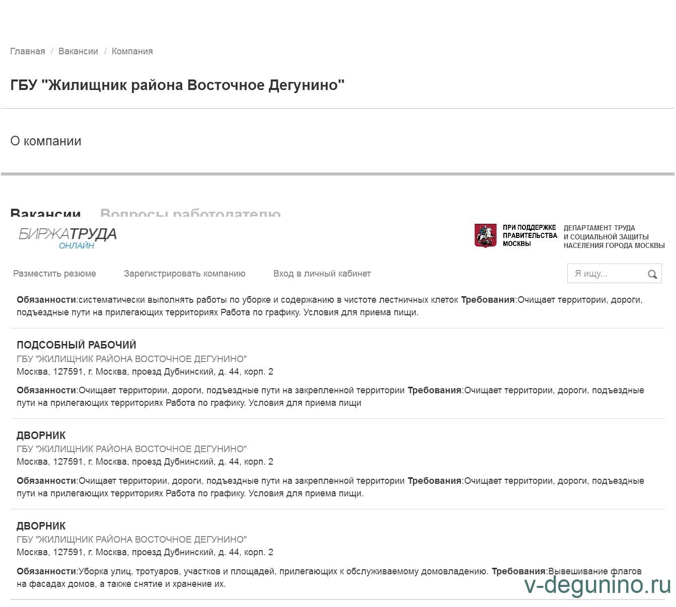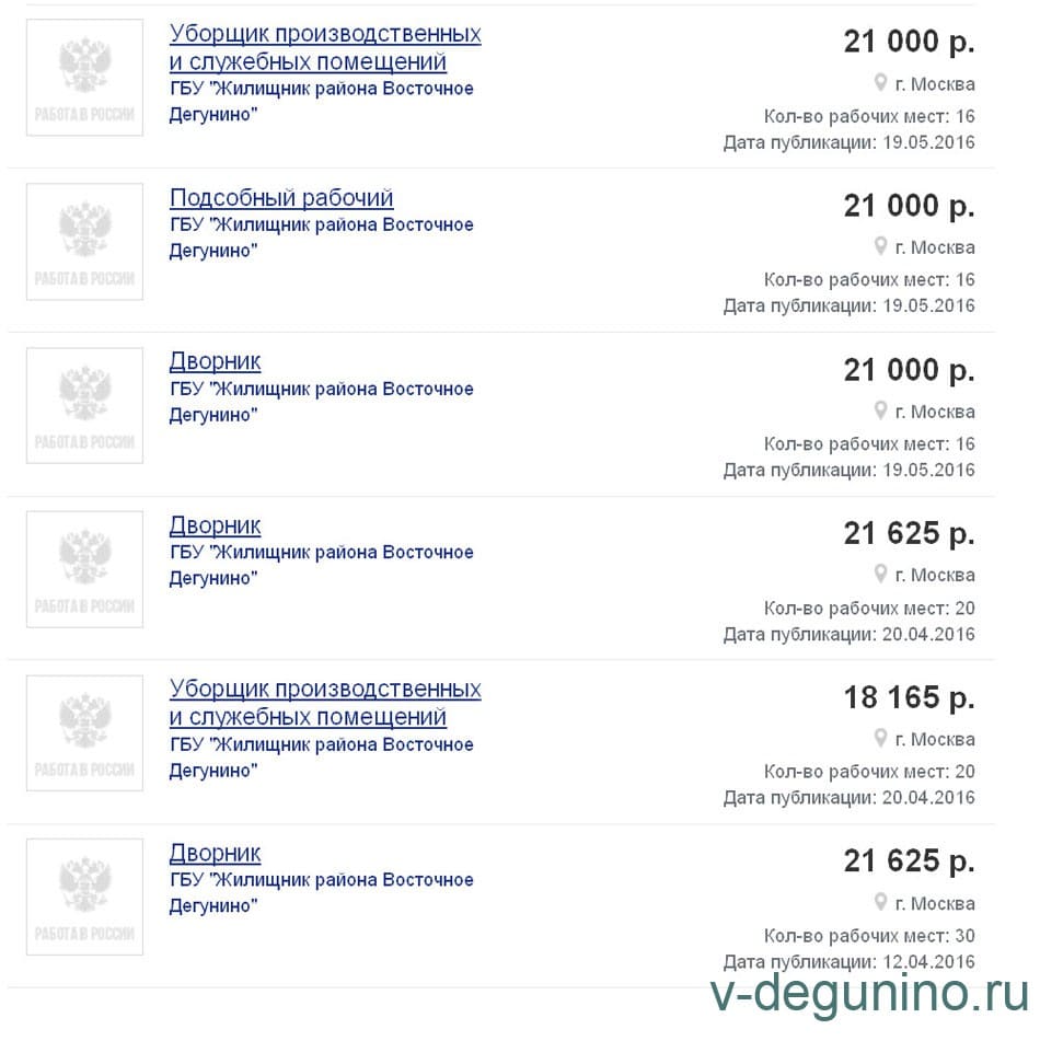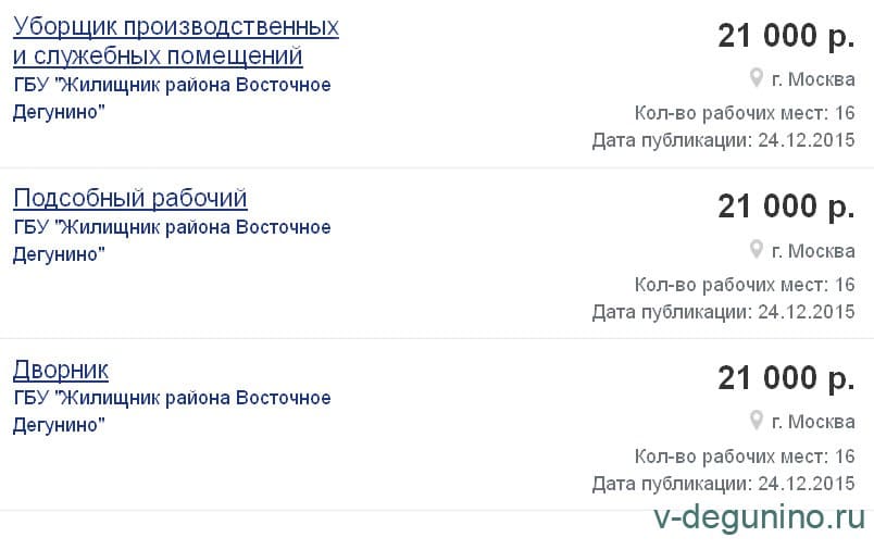 Вакансии ГБУ Жилищник района Восточное Дегунино